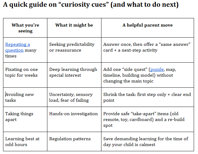 Make it not-school. Follow the interest, keep it short, and remove the “right answer” vibe. Curiosity thrives when it feels optional.